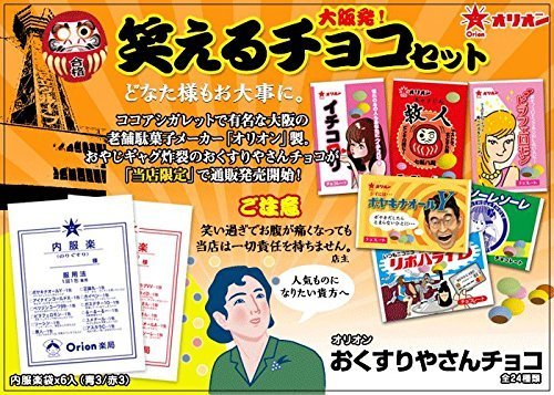 出典:amzn.toちょっとレトロな雰囲気ただようパッケージのこちらの商品は、お薬セットかな?と思いきや、実は全部チョコレート。駄菓子メーカー大手の「オリオン」が限定発売した、遊び心いっぱいのパロディチョコセットです。