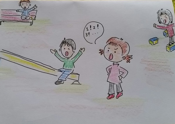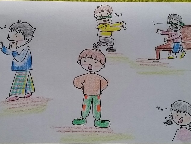 鬼以外の子達が「おにさん!おにさん!何色ですか?」という掛け声をかけます。