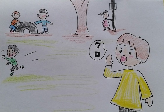 色を見つけられなかった子を鬼は見つけ、その子をタッチすると、鬼が交替となります。