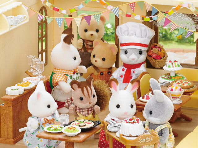 お店のショーウィンドウには、テーブル席に座った大好きなシルバニアファミリーが飾られており、お店に入った瞬間から子どものテンションが上がること間違いなし!