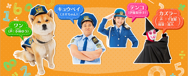 そのトラブルを犬の「ワン」、スギちゃん扮する「キュウベイ巡査」、女性警察官の「テンコ巡査」で算数を使って解決する…というドラマ仕立ての内容になっています。