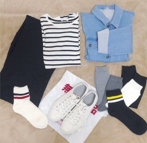 出典:www.instagram.comデニムシャツ、ボーダーTシャツ、黒のズボンなどカジュアルアイテムと違和感なく溶けこむ無印スニーカーは無難にコーディネートがまとまります。