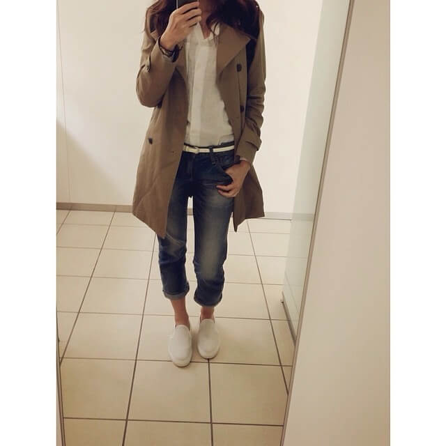 白スニーカーはトレンチコートとも高相性!