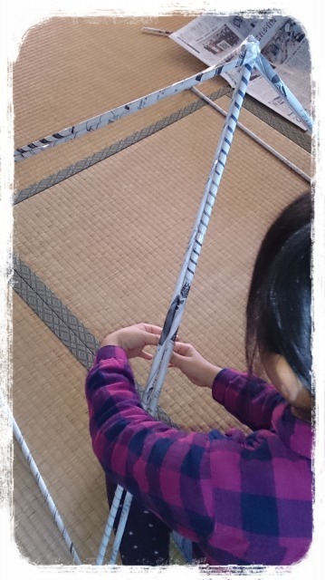 【新聞紙】テントの骨組みを全て新聞紙で作るので、5日分程度用意してください。