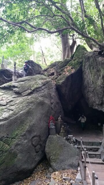不動の滝の上はちょっとしたお散歩道になっていて、階段で上れるようになっています。また、その下も洞窟のようになっていて入ることができます。