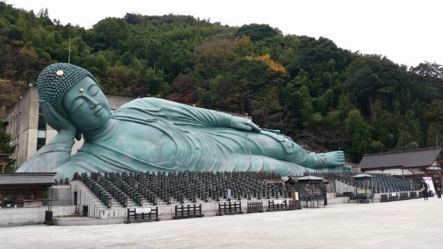 南蔵院の1番の見どころでもあると言っても過言ではない涅槃像は、高さ11メートル、全長41メートルの大きさで、ブロンズ像では世界一の大きさとなっていて、大迫力です。