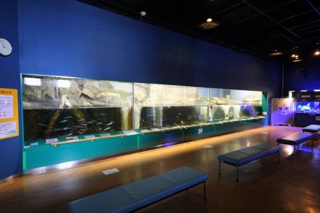 出典:oyodo.miyabunkyo.com1Fのホタルのへやからさらに奥に進んだところにある「サカナのへや」では、横に長い水槽に、大淀川に住む魚たちが風景もそのままに泳いでいる姿を眺めることができます。