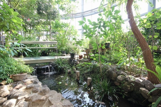 出典:oyodo.miyabunkyo.comサカナの部屋のさらに奥へ進んだガラス窓に囲まれた温室には小川が流れていて、植物の周りにはたくさんのちょうちょが飛び回っています。