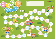 こちらは、カレンダー式のごほうびシートです。1月から12月まで1年分のシートがあり、月ごとに取り換えができるようになっています。