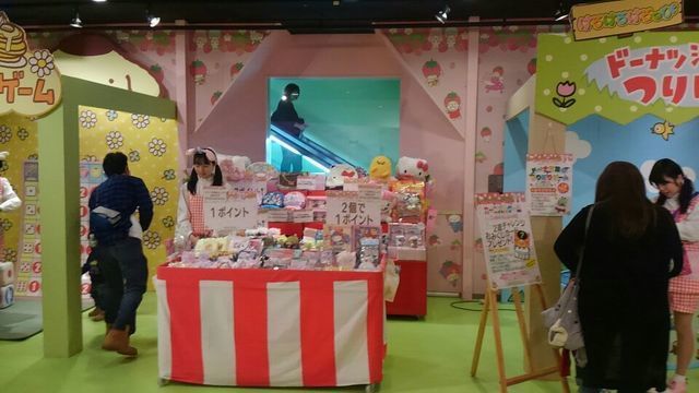 同じく1階の「サンリオタウン」では、ドーナツつりなど、小さな子どもでも楽しめるアーケードゲームもあります。