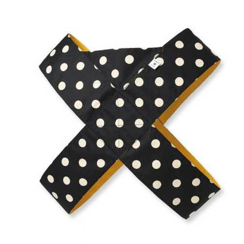 横幅のある布がクロス(X)型に交わっている抱っこ紐です。まず大人が抱っこ紐を装着し、そこに赤ちゃんを入れるかたちで抱っこします。