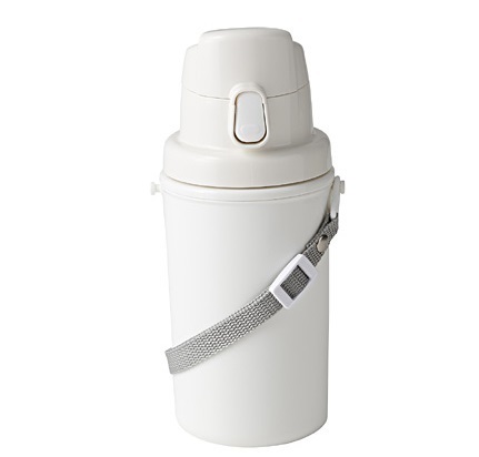 出典:www.muji.net無印良品の水筒は、真っ白なボトルでグレーのストラップ。シンプルなデザインです。