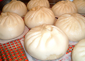 豚まんとジャンボ焼売の手作り体験教室を行っている蓬莱本館。ワクワクドキドキしながら自分で作った豚まん、ジャンボ焼売はおいしいですよ!
