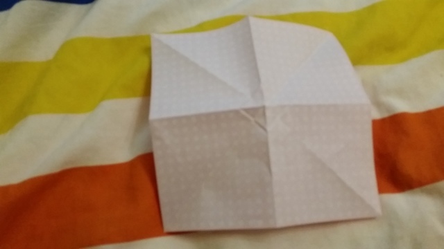 単純な水玉模様ではなく、折り紙の中央を中心に水玉模様がサークル状になってさらに模様を描いています。大人っぽい雰囲気の折り紙ですね。
