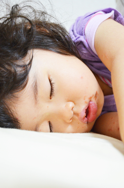 娘は3日くらいに回復しましたが、娘が回復したと同時に息子(1歳)が手足口病を発症しました。息子の方が症状が重く、熱も3日間ひかず、1週間ほど身体が痛痒い状態が続き、機嫌が悪く睡眠もとれませんでした。