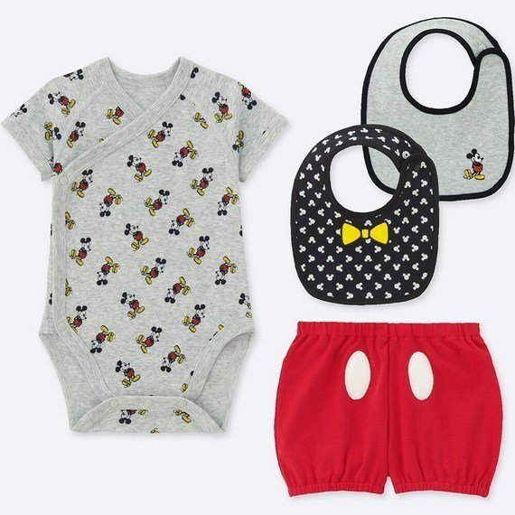 出典:www.uniqlo.comディズニーとコラボレーションしたとってもかわいいセット商品が登場です。ボディ肌着とボトムス、スタイが2枚入った4点セット。洋服感覚で着せられるセットなので、プレゼントにもおすすめですよ。