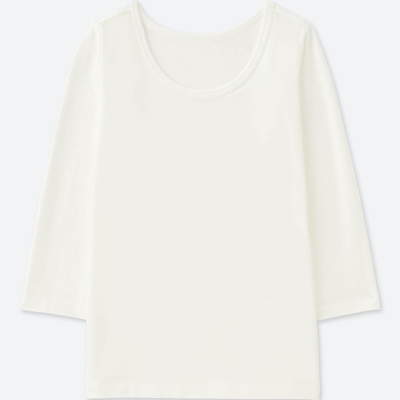 出典:www.uniqlo.com真冬の寒い時期には長袖のヒートテックがおすすめ。深めのUネックと短めの袖で、インナーが洋服から出ないよう、細かい配慮がされています。