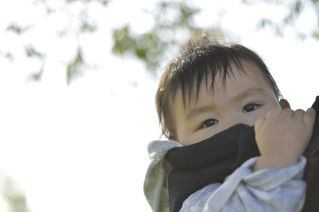 外出先では子どもと体が離れないようにすることが1番大事です。そして、落ち着くことです。赤ちゃんの場合は抱っこかおんぶをしてしっかりと離れないようにします。