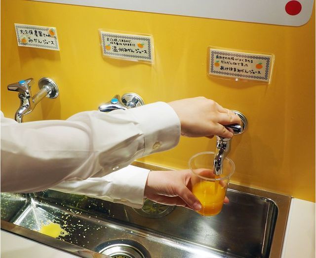 ジュースを注文すると何も入っていないコップを渡されます。そのコップを片手に、店内にある蛇口をひねるとなんと!そこからフレッシュジュースが出てくるんです。