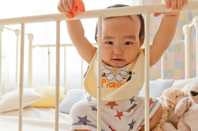 多くのママが、寝返りをしだす5、6ヶ月の時期またはつかまり立ちをする8、9ヶ月頃にベビーベッドから子ども用布団やキッズのベッドに移行します。