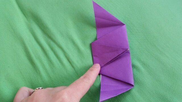 (13)尖がった部分を半部に折る