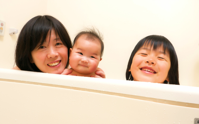 大人は両手があくので、赤ちゃんのお世話も、上の子のお世話もしやすくなりますよ。洗い場で上の子が歩き回っても、ひとまず赤ちゃんの居場所は確保できます。