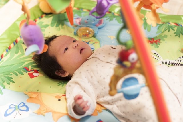 生まれた時から使用できますが、5、6ヶ月くらいの赤ちゃんにおすすめのおもちゃです。