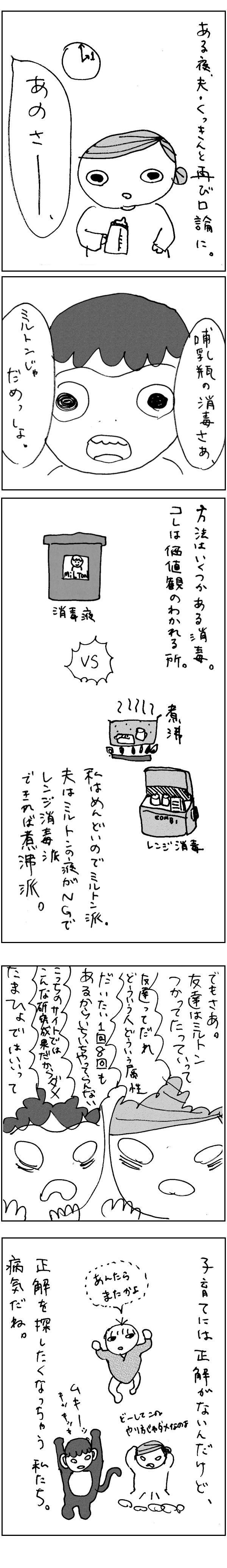 (21)子育ての正解 〜今日も夫婦で小競り合い〜いやぁ。姑のように神経質な気質の夫と、ズボラな私だと、子育ての方針が食い違いまくりで、毎日こんな感じです…。この記事に関連するリンクはこちらfacebookのにこたまコミュニティです。ぜひご参加ください。にこたまの公式HPですまとめ夫婦でうまいことやるには、どうしたらいいもんですかねぇ。この記事に関連するリンクはこちらfacebookのにこたまコミュニティです。ぜひご参加ください。にこたまの公式HPです▼前の記事へ【育児マンガ】はたらく母さんの日々。『にこたま』|バックナンバー ・掲載内容や連絡先等は、現在と異なる場合があります。・表示価格は、改正前の消費税率で掲載されている場合があります。ご了承ください。 関連記事 【育児マンガ】はたらく母さんの日々。『にこたま』|(18)お食い初め みっきーあらなわ 【育児マンガ】はたらく母さんの日々。『にこたま』|(19)背中センサー みっきーあらなわ 【育児マンガ】はたらく母さんの日々。『にこたま』|(20)たそがれこわい みっきーあらなわ 関連するキーワード 哺乳瓶 けんか ママ 消毒 パパ はたらく母さんの日々。『にこたま』 あるある 子育ての悩み