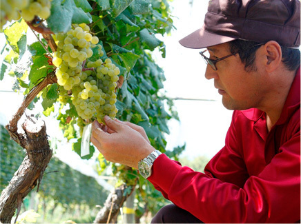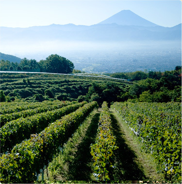 【1】「サントリー登美の丘ワイナリー」のワイン用ぶどう畑
