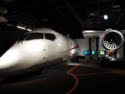 展示コーナーでは、「航空宇宙」「海洋」「交通・輸送」「くらしの発見」「環境・エネルギー」「技術探検」「乗物の歴史」の7つのテーマにちなんだ最先端技術の、迫力ある実機や大型模型などが展示されています。
