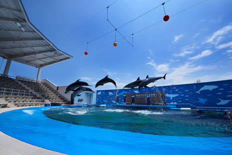 大迫力のイルカとアシカのコラボレーションしたショーは、子ども達も大興奮間違いなしの面白さ。一番前の席にすわると水がどっぷりとかかるのでご注意を。