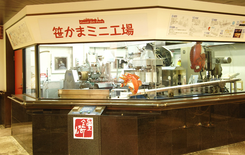 「笹かまミニ工場」では、笹かまぼこでができるまでをガラス越しに見ることができるので、子ども達も興味津々になること間違いなしです。