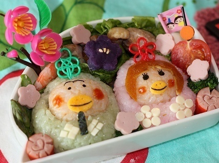 かわいいひな祭りのキャラ弁で、桃の節句も盛り上がることでしょう。