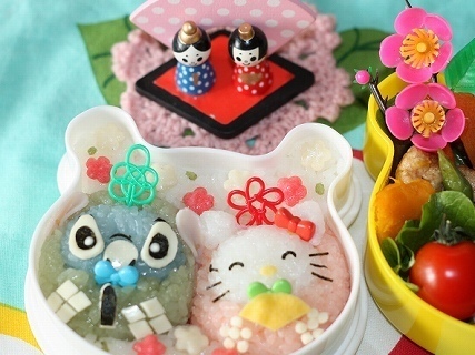 出典:ameblo.jpスティッチとキティちゃんのひな祭り弁当です。