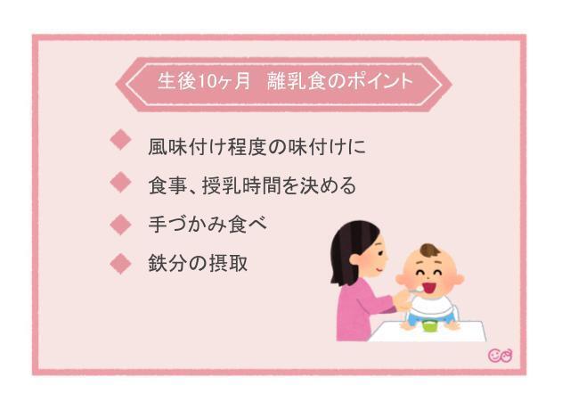 また生後10ヶ月ころの赤ちゃんは離乳食以外にもまだおっぱいやミルクが必要です。授乳回数の目安は1日4~5回とされています。授乳時間をお昼と夕食の間や寝る前など、可能な限り食事にひびかないタイミングでスケジュールを組んでいくと良いですよ。