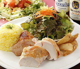 鶏をまるご数十種のスパイスを使用した特製ダレに数日間つけ込むなどして、手間をかけて作っているそうでランチメニューのメイン料理としていただくことができます。
