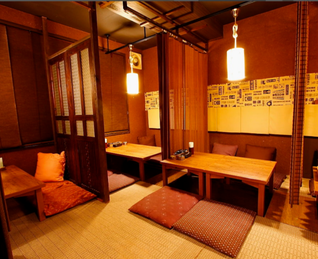 ゆったりとしたソファ席の個室、ベンチ式の個室、座敷の個室、掘りごたつの個室など多様な個室があり、どの個室もくつろぐ事ができます。