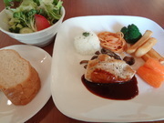 キッズメニューは、小さいハンバーグにポテト、野菜などがついていて、ちょうど子どもが食べられる量にしてあるのが嬉しいですね。ソフトドリンク付きです。