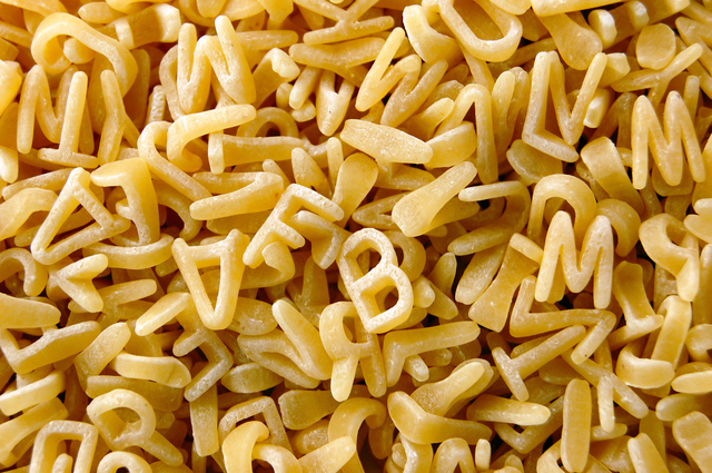 (3)乾いたら、スプーンの中央部分に自分の名前のアルファベットパスタを配置して接着します。