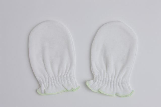 肌のトラブルがある赤ちゃんなどは、顔をかきむしってしまうから、という理由でつけていることもありますが、一般的にはあまり必要なさそうです。
