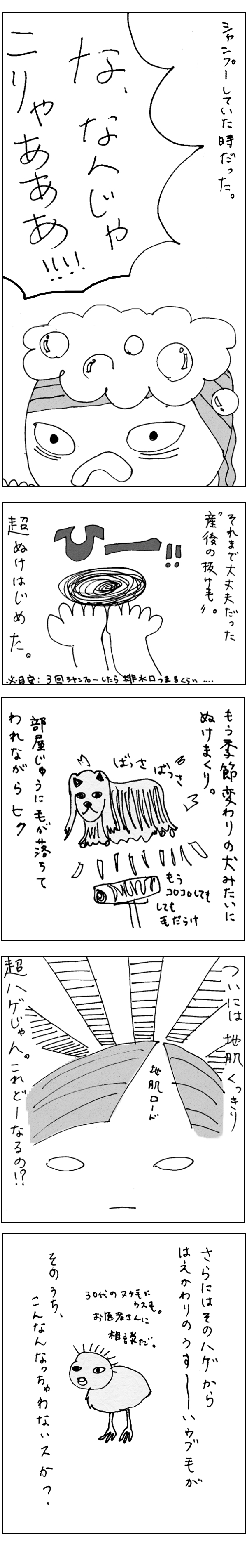 第22回は、産後の抜け毛がヤバくて、もうどうしたらいいのやら!?な話。