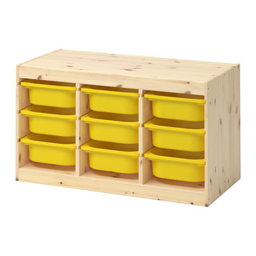 出典:www.ikea.com月齢が低く、まだ分類したり色分けしたりできない子ども向けには、このように一ヶ所に全部のおもちゃを入れる収納がおすすめです。一度に出して、一度で片付けられるので、「遊ぶ」と「片付け」の習慣づけがしっかりできるでしょう。