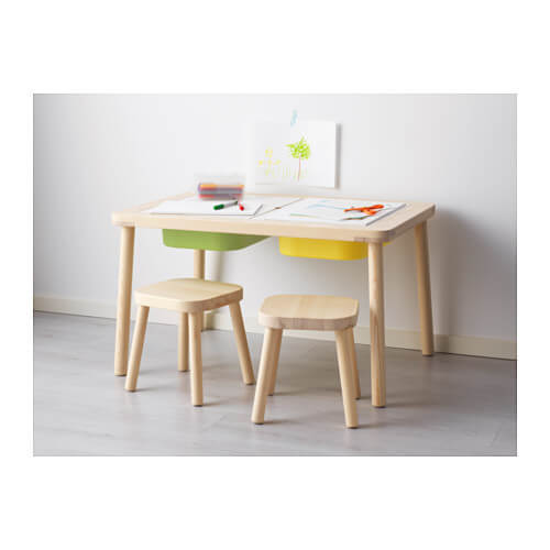 出典:www.ikea.comこちらは、TROFASTの収納ボックスを組み合わせて使うと、細々した物の収納ができる子ども用テーブルです。