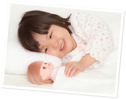 ・毎日ミルクをあげたり、パジャマを脱がせたり、マメにお世話してごっこ遊びを楽しんでいます。寝るときも一緒です。