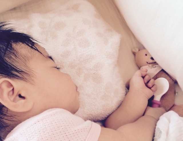 多くの赤ちゃんが、昼間起きている時間が長くなり、夜にまとまって寝るようになってきます。夜に寝るようになるといっても、授乳や夜泣きで何回か起きることも。