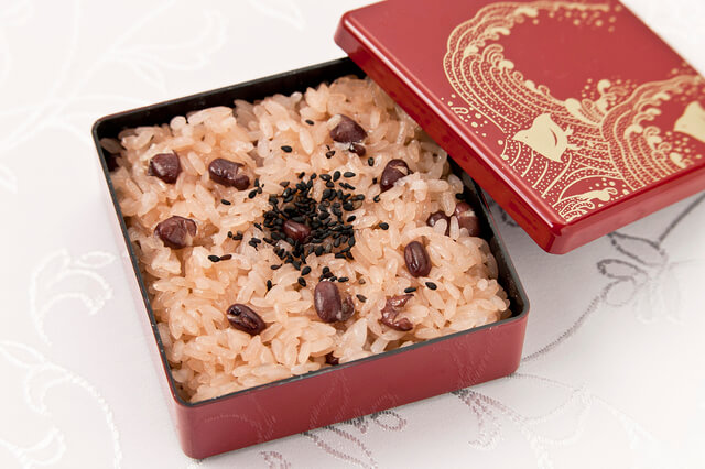 赤飯を先にとれば、食事に困らない、電卓やそろばんをとれば、商売人になる、お金をとれば、お金持ちになれる、筆を撮れば頭が良くなる、というふうにします。