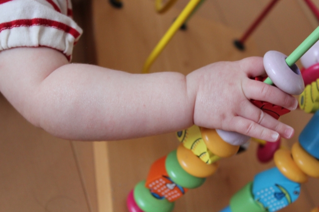 1歳以下の子には、顔の近くに持って行き、よく見て遊ぶことができるので単純な形の小さなものを選ぶのがポイントです。