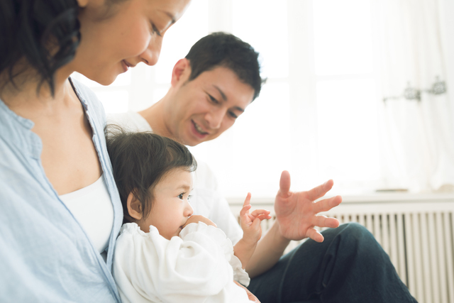 パパが仕事から帰ってきたら、「今日はこんなことができるようになったよ」と子どもの成長を話したり、「夜中の授乳が多くて眠いから辛いな」などと、困っている状況に関してもパパに伝えましょう。パパを育児の部外者にしないことが大切です。