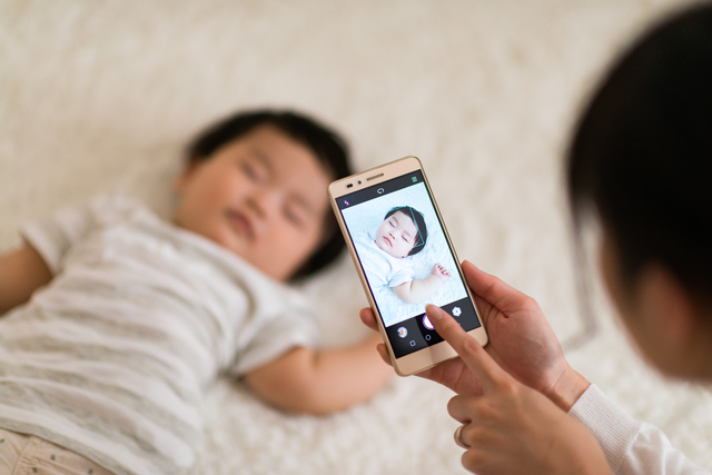 筆者は、育児の大変さを実感してもらうため、子どもの写真を撮る時は、笑顔だけでなく、機嫌が悪い顔や泣いている顔も撮って、パパに見せるようにしています。