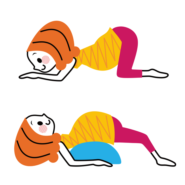 お尻を高くあげることで、赤ちゃんの回転を促す方法です。妊娠30週を過ぎても頭位に改善しない場合に行います。